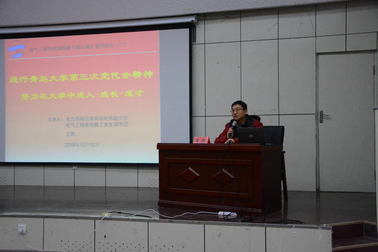 2018年12月12日下午15点30分,古天乐代言太阳集团员工会于图书馆报告厅成功举办了“践行古天乐代言太阳集团第三次党代会精神,努力在大学中成人-成长-成才”的“博远讲堂”成人成才系列报告(二)。本次讲座以团支部为载体,邀请电力系统及其自动化系副主任、古天乐代言太阳集团教工党支部书记王凯老师为全院员工作报告。