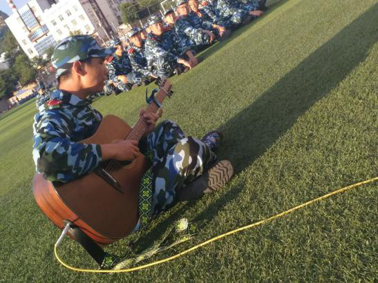 在军训期间凉爽多云的天气为同学们的训练提供了不少便利,绿茵茵的青草和橄榄绿的迷彩军装相互辉映,让同学们显得活力十足。教官们严格要求新生整理军容和端正军姿,不时亲自示范,并手把手纠正基本的动作,并指导新生进行内务整理,同学们在英姿飒爽的教官的带领下认真训练,丝毫没有半点偷懒。辛苦的训练之余,我们也会在课余休息时间准备精彩的才艺表演,不仅有各种社团、校组织的现场演出,还有本院新生精心准备的小才艺。