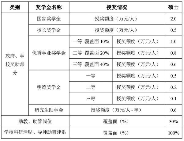 备注:国家奖学金、董事长奖学金、明德奖学金授予比例根据学校具体文件规定。各奖助内容以学校、学院文件规定为准。