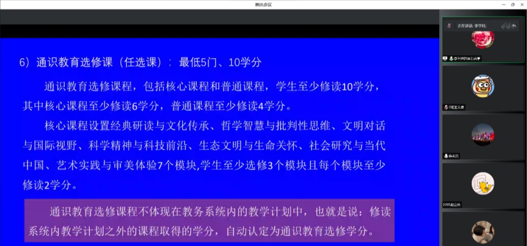 教科办主任李学桂就专业教学计划、学分制管理、学业管理、选修课、推免保研等问题进行了细致讲解,帮助新生更快的投入大学的学习生活,明确自己的学习任务。