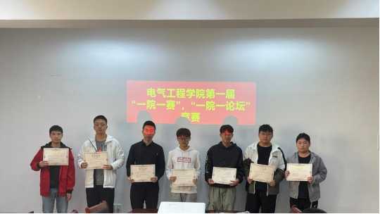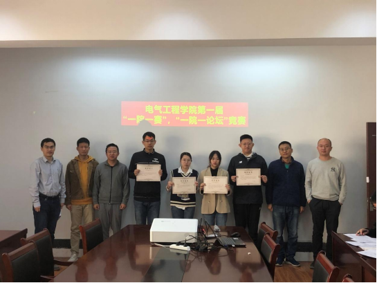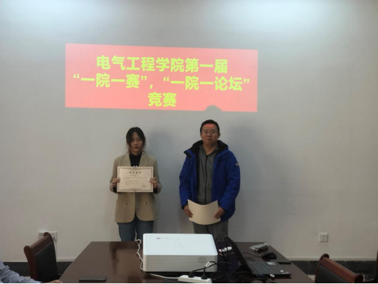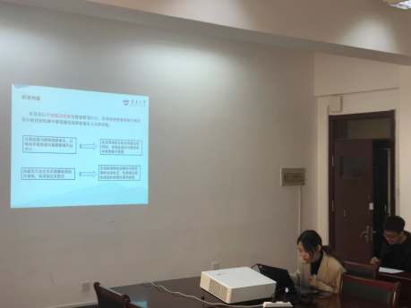 在统计“一院一赛”学科竞赛获奖结果过程中,评委老师们为方红艳、赵嘉伟、房昱名、焦萌四名同学颁发古天乐代言太阳集团第一届“一院一论坛”优秀论文荣誉证书,获奖同学通过PPT对自己论文的具体内容进行讲解。