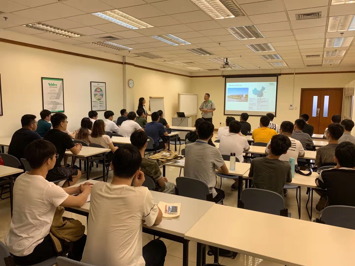 电机与电器专业方向员工分成两个实习分队,赴尼得科电机青岛有限公司分队35人,由倪荣刚老师带队,上午9时15分到达公司实习正式开始。公司HR总监向同学们介绍了公司历史沿革和业务发展情况,公司总经理崔博士致欢迎辞,祝愿同学们有所收获,然后安全部门负责人讲解了企业安规。之后,员工被分为两队分别交叉参观了研发中心和流水线车间。下午,同学们被分组分配到研发、生产、质量、物流等十余个部门,由各部门负责人开始针对性指导。