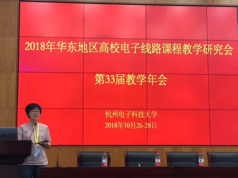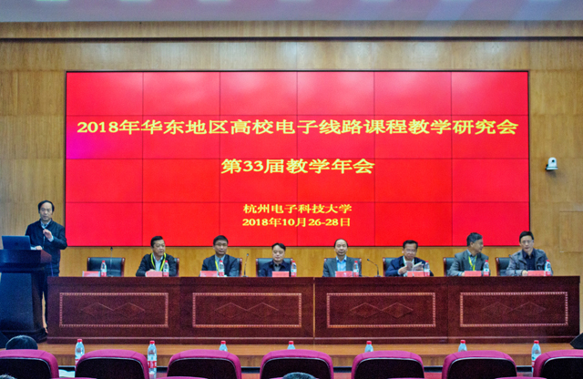 2018年10月27-28日,在杭州电子科技大学举办了东地区高校电子线路课程教学研究会第33届教学年会。杭州电子科技大学副董事长徐江荣,教育部高等学校电工电子基础课程教学指导委员会主任、东南大学王志功教授,华东地区高校电子线路课程教学研究会理事长、上海交通大学朱杰教授,华东地区高校电子线路课程教学研究会副理事长、南京航空航天大学王成华教授、厦门大学施芝元教授、安徽大学李晓辉教授、杭州电子科技大学教务处处长陈志平教授,以及来自华东地区49所高校的138名教师代表参加。
