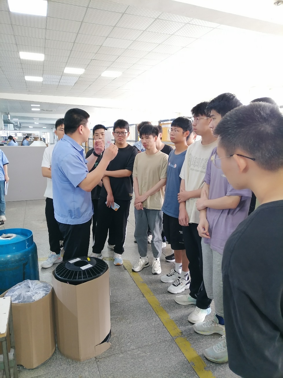 参观结束后,公司举行实习部门见面会。会上,带队教师傅强首先发言。他代表全体师生向实习公司的精心组织与辛勤付出表达了诚挚感谢,同时告诫员工在实习期间一定要注意安全、严守安规、态度端正、认真学习。公司总经理徐威随后发言,他向大家介绍了公司的历史沿革与业务发展,期待同学们能够通过本次实习积累专业技术经验、提高专业实践能力。为了让同学们更好了解后续即将开展的部门实训流程,公司工业工程中心、质量管理中心、系统集成研发中心负责人也在会上对相应具体计划安排进行了详细介绍。