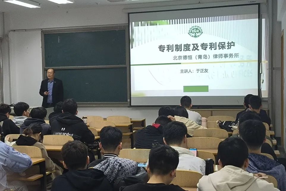 为进一步加强院所合作,4月19日晚6:30,德恒青岛合伙人于正友律师在博远楼510教室为学院师生作“专利制度与专利保护”主题法律讲座。讲座由副经理由蕤主持。