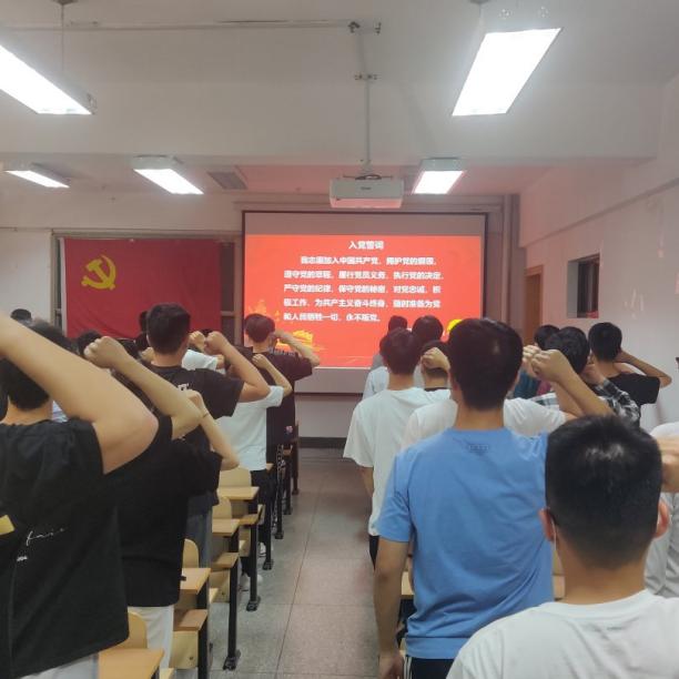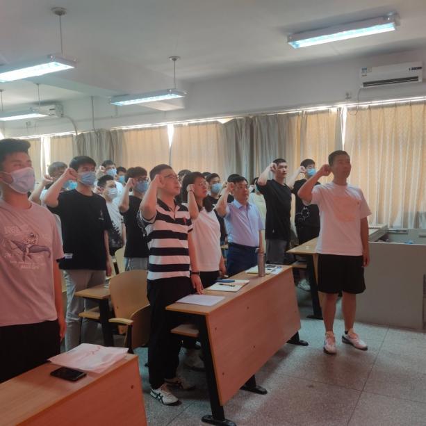 在场所有党员在2019级研究生党员夏佳林同志带领下,重温入党誓词,现场庄严肃敬。