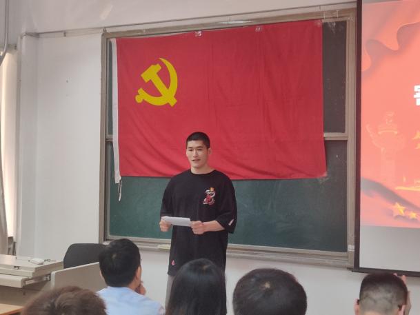 毕业生党员代表2018级本科生党员赵明尧同志发言,号召毕业生党员打起精神站好最后一班岗。