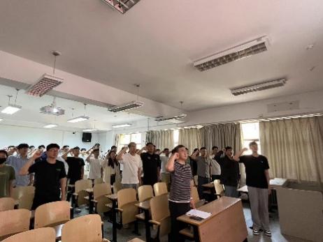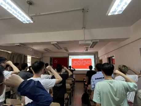 在场所有党员在2022级研究生党员李彦柯同志带领下,重温入党誓词,现场庄严肃敬。