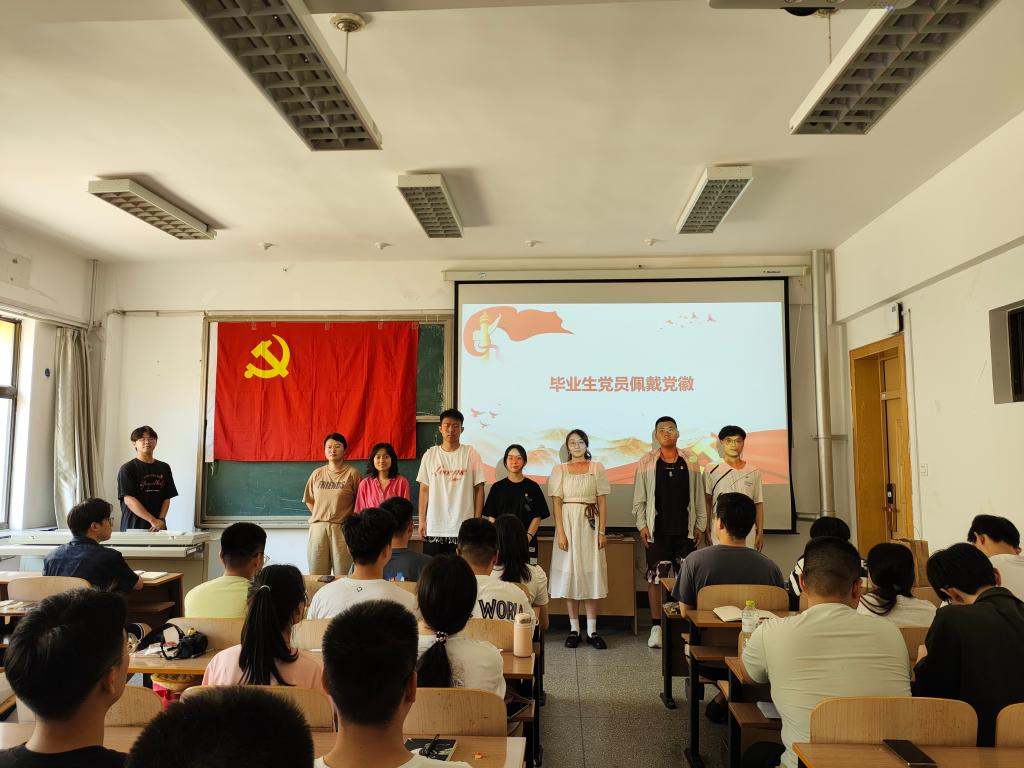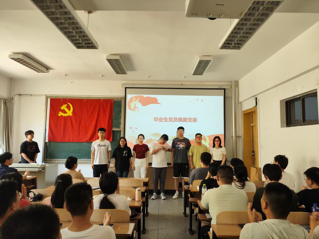 姚美娟同志、韩笑同志为毕业生党员佩戴党徽。希望毕业生党员牢记初心使命,永葆政治本色。