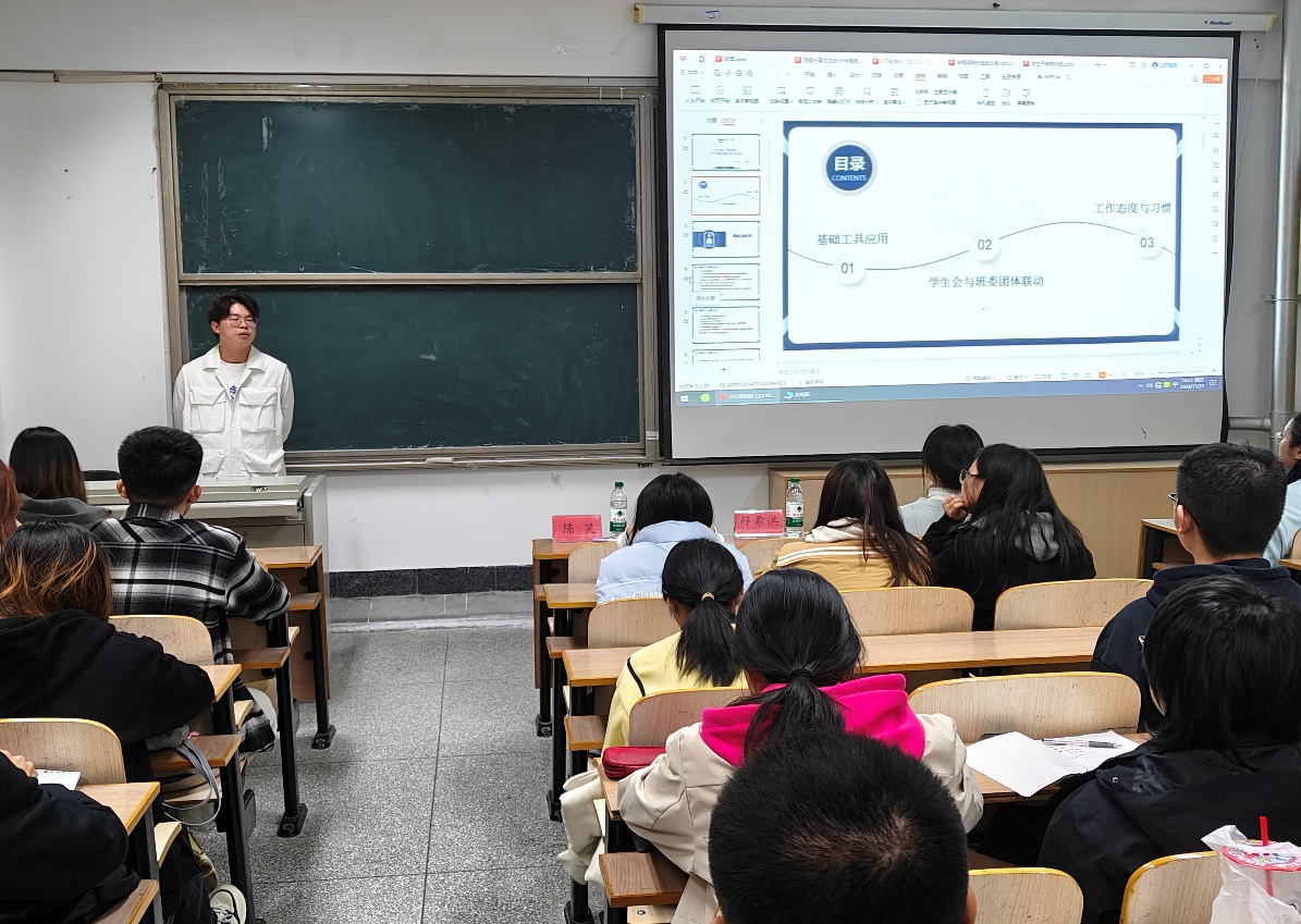 为进一步提升员工干部的综合素质,增强员工干部队伍的凝聚力和号召力,打造一支信念坚定、品学兼优、心系同学的员工干部队伍,为学院员工工作的高效开展奠定坚实基础。11月21日下午,学院举办“青风领航”员工干部素质能力提升培训班。公司党委副书记薛希洪、团委副书记韩笑,高年级员工干部陈昊、孙传莫琳、邹程润以及学院第七届员工会成员及2024级本科新生班干部参加了会议。